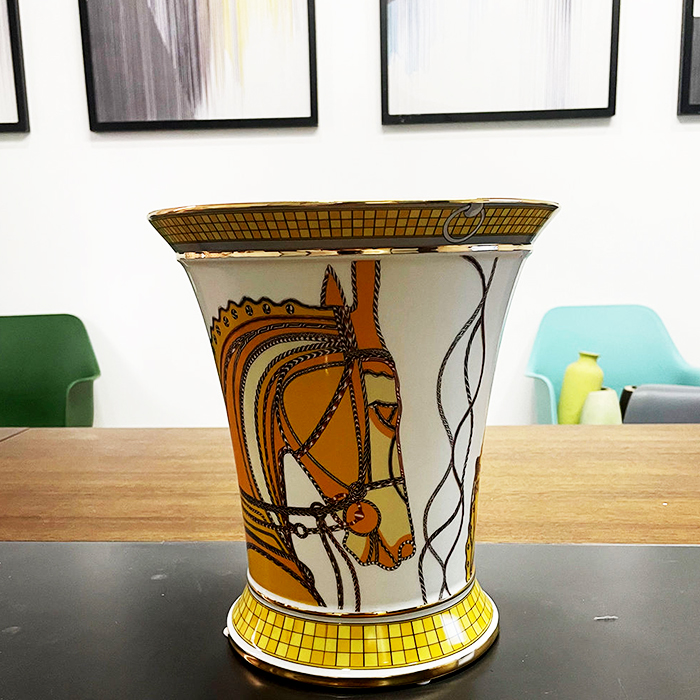 This ceramic jar on the base of the jar body,by Jingdezhen professional workers attached exquisite decorative paper, so that the whole jar looks fashionable. Simple shapes and fashionable colors are in line with modern design trends. This clay pot is used for everyday decoration.